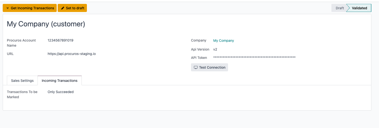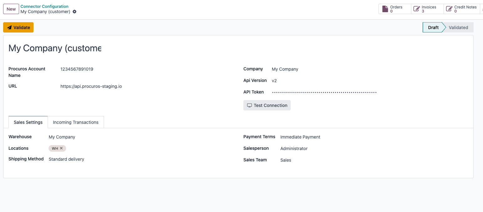 Company: The Odoo company this connector is for. You can only have one validated connector per company.
