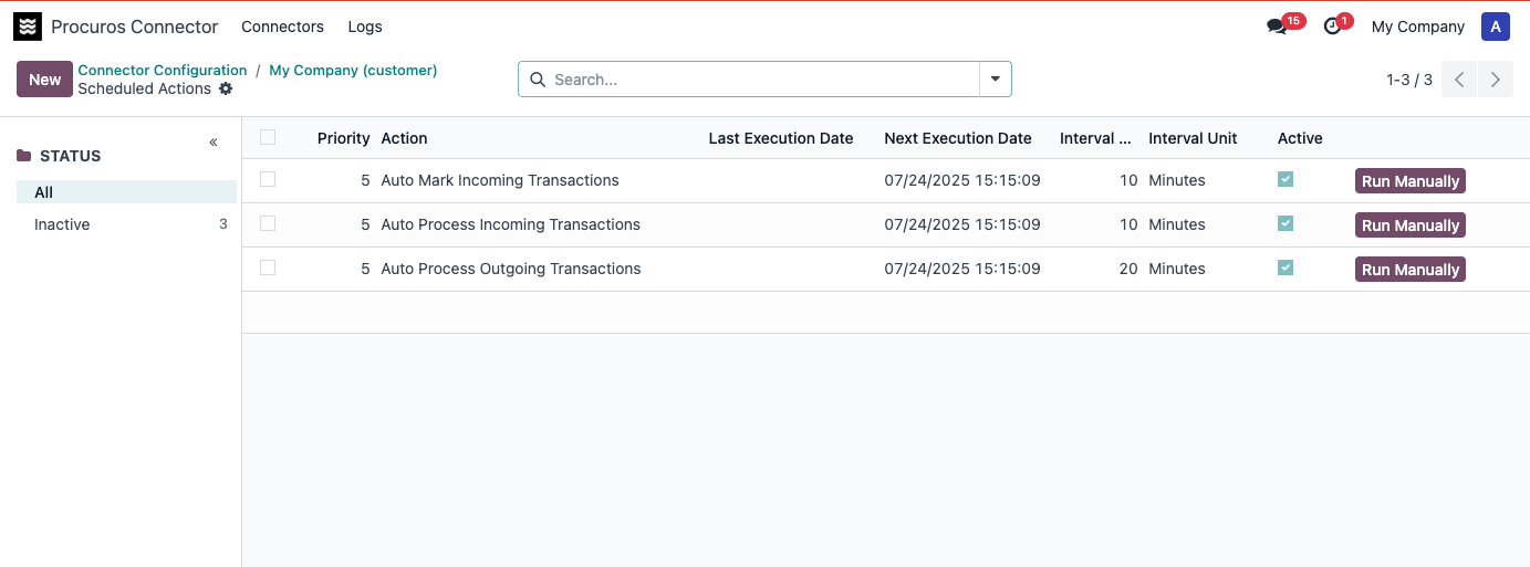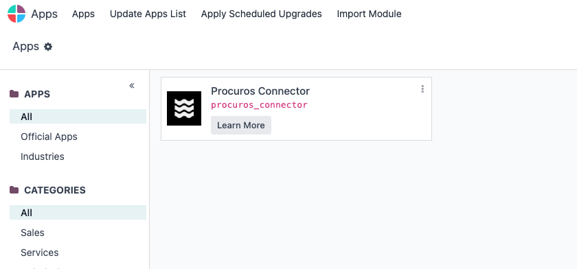 Navigate to Procuros Connector in the main Odoo menu and select Connectors.