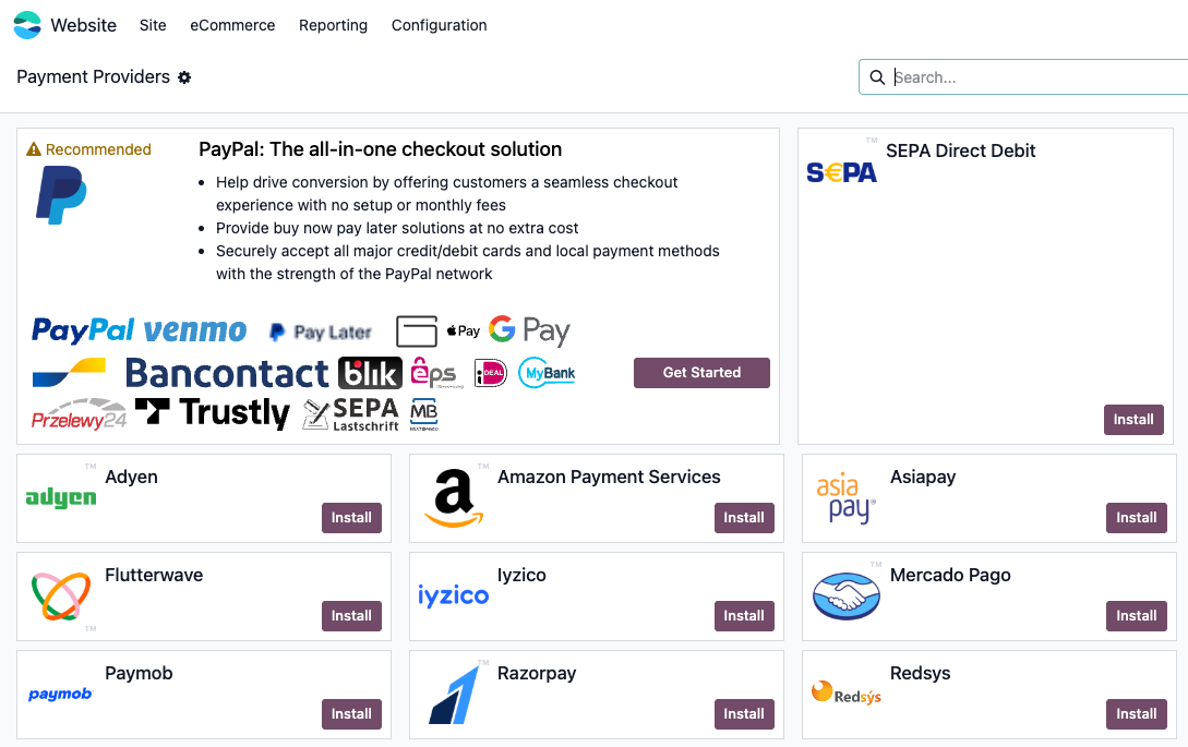 Navigate to Website > Configuration > Payment Providers.