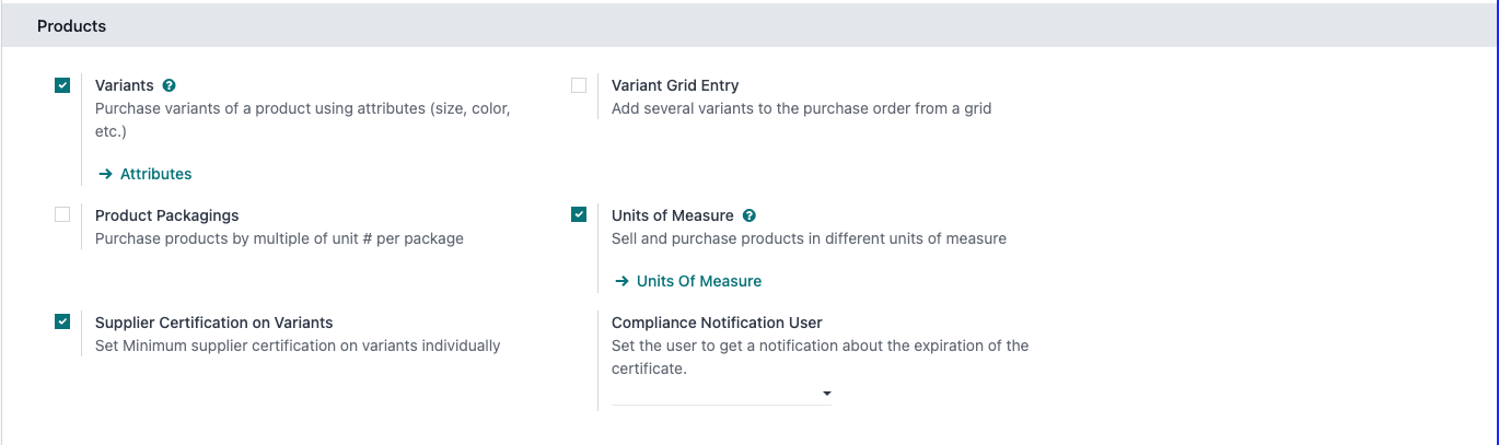First, you need to decide if you want to set compliance levels on individual product variants or just on the product template.