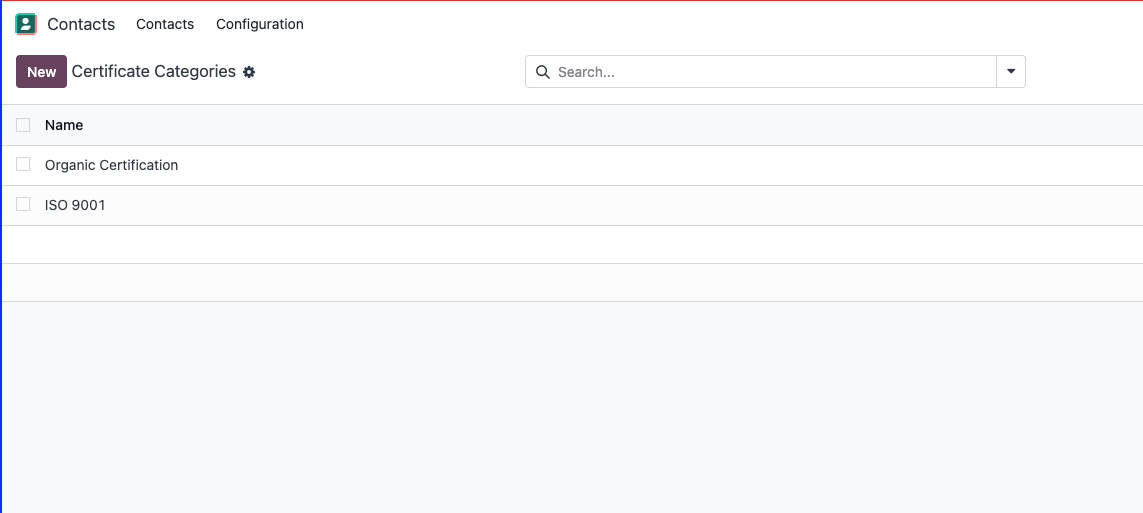 Click New and enter the name for the category (e.g., "ISO 9001", "Organic Certification").